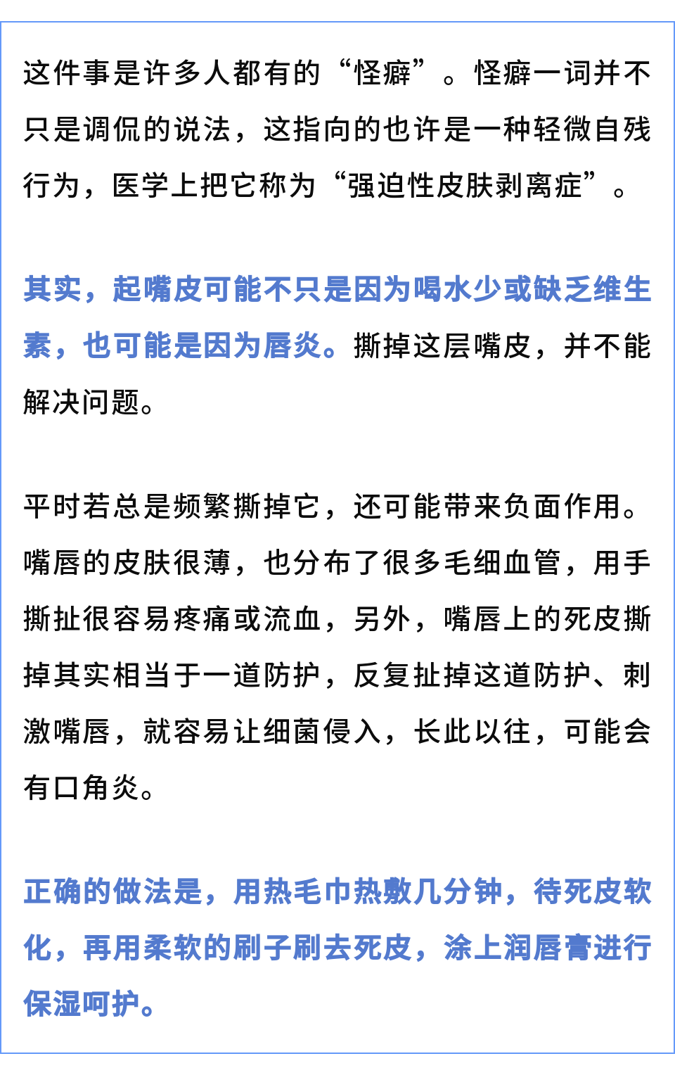 每个人在生活中都会有一些让自己“暗爽”的小癖好:累了一天,直接瘫在沙发上葛优躺刷手机;熬夜后睡到中午,把早饭和午饭合并在一起变成一顿。以及在许多人心中都成就感满满的:嘴唇干燥时,撕下来一块完整的嘴皮。