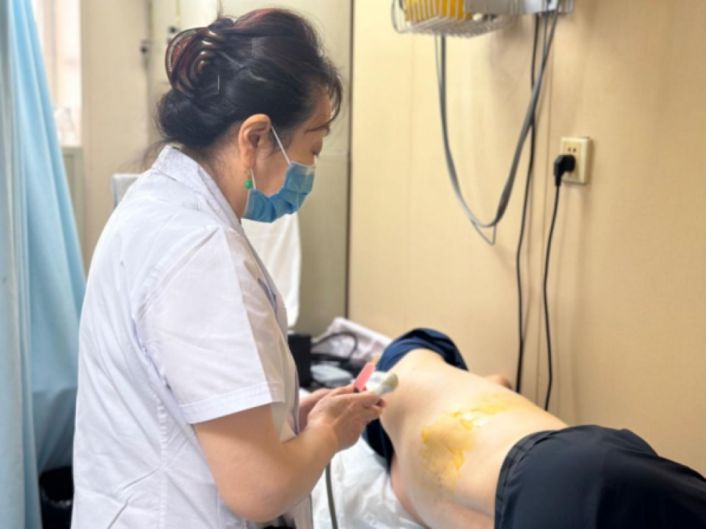 7月11日,北京医院疼痛科主任医师赵英为带状疱疹后神经痛患者进行治疗。张爽摄