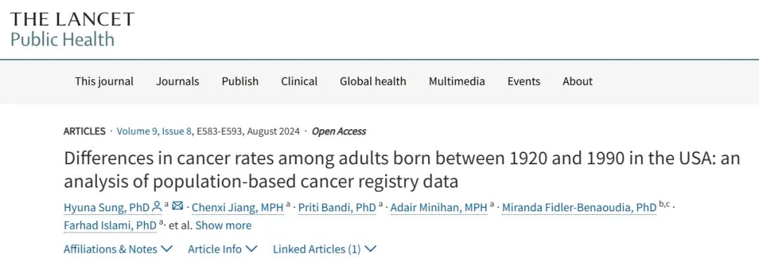 2024年8月,《柳叶刀·公共卫生》期刊发表了一项来自美国癌症协会的研究,在对2300余万名癌症患者和730余万例癌症死亡数据进行分析发现:34种癌症中有17种的发病率在年轻人中猛增,肠癌、肾癌、胰腺癌、子宫内膜癌等多种癌症发病率升高达2-3倍。